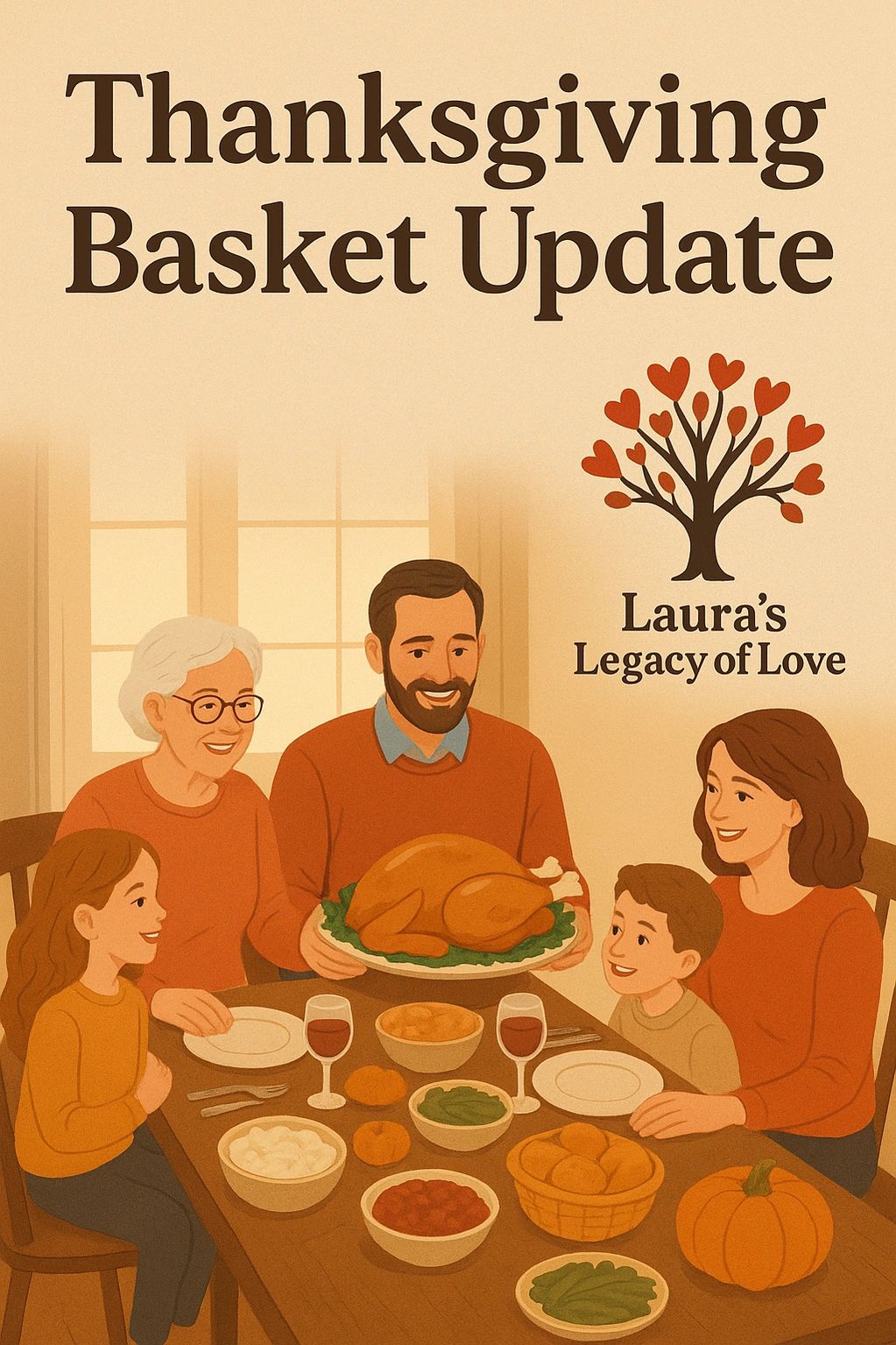 Before we lost Laura, Laura gathered food to help local food banks, homeless shelters and domestic violence shelters. We decided in 2021 to keep that legacy going! Since then, we have raised over $5,000, donated over 250 turkeys and tons of foods to help thousands of families have a better Thanksgiving!